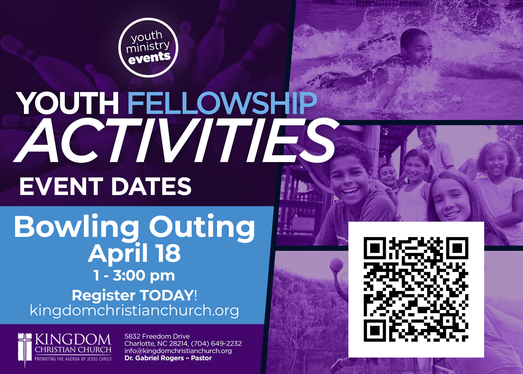 Youth Bowling Day! Join us for an afternoon of bowling, food, and fun with the youth! This event is open to ages 5-18 and is a great opportunity for our young people to spend time together, build friendships, and enjoy a fun activity outside the church. Date: Saturday, April 18 Time: 1:00 PM - 3:00 PM Location: SpareTime Pineville Cost: $35 per person